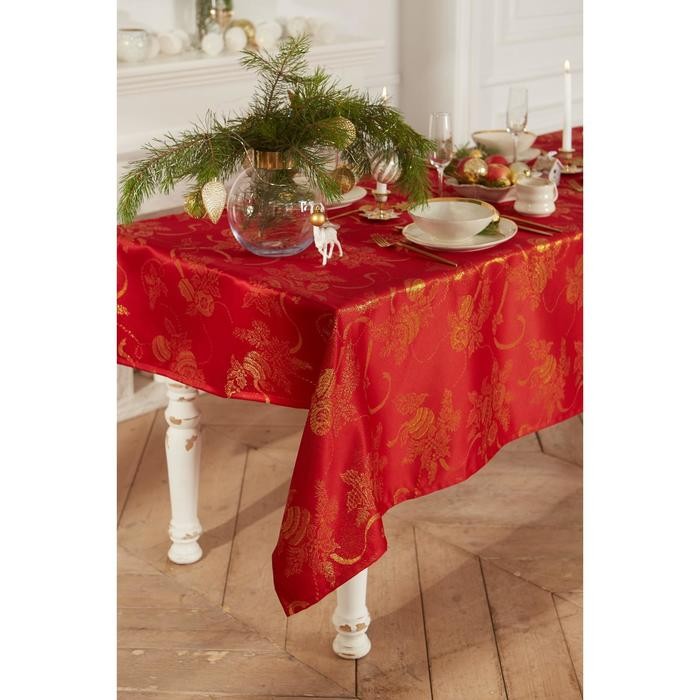 Скатерть Этель «Счастливый Новый год» красный, 150*180 см, 115 ±10 гр,100% п/э