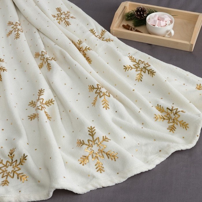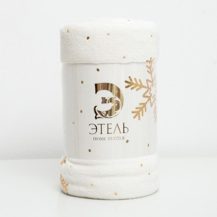 Плед Этель «Золотые снежинки», белый, 150×200 см, корал-флис