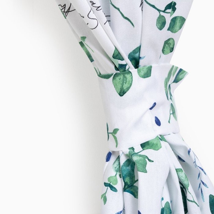 Шторы для кухни «Доляна» Eucalyptus 150*180 см- 2 шт, подхваты — 2 шт, 164г/м2, 100% хл