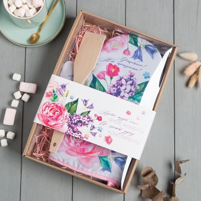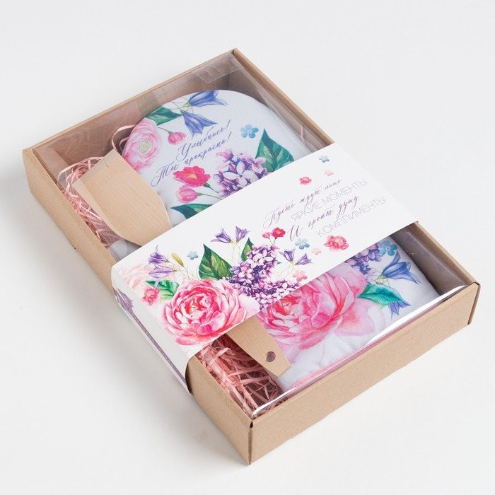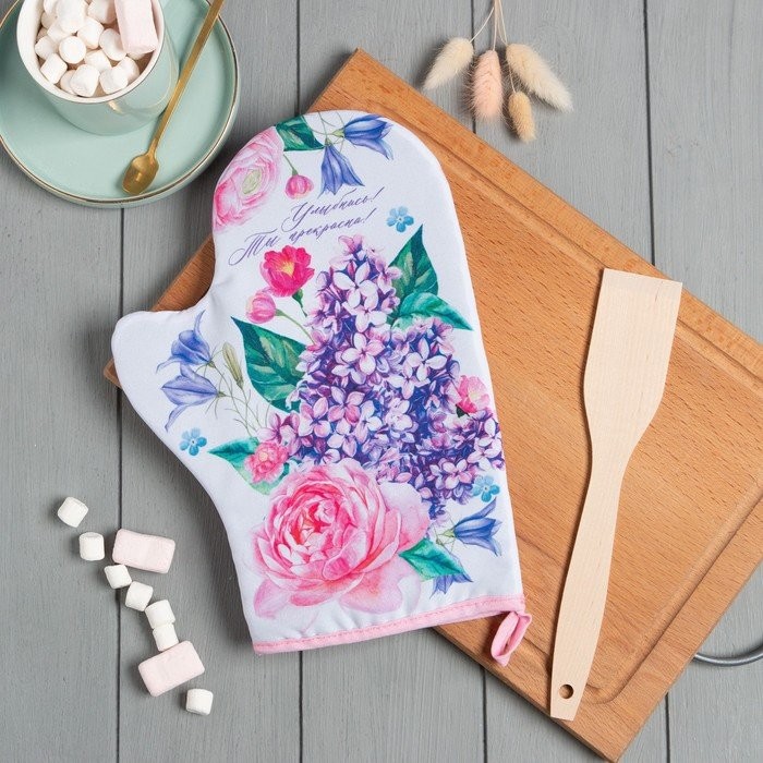 Кухонныйнабор «Улыбнись», варежка-прихватка 20х28см, лопатка деревян.