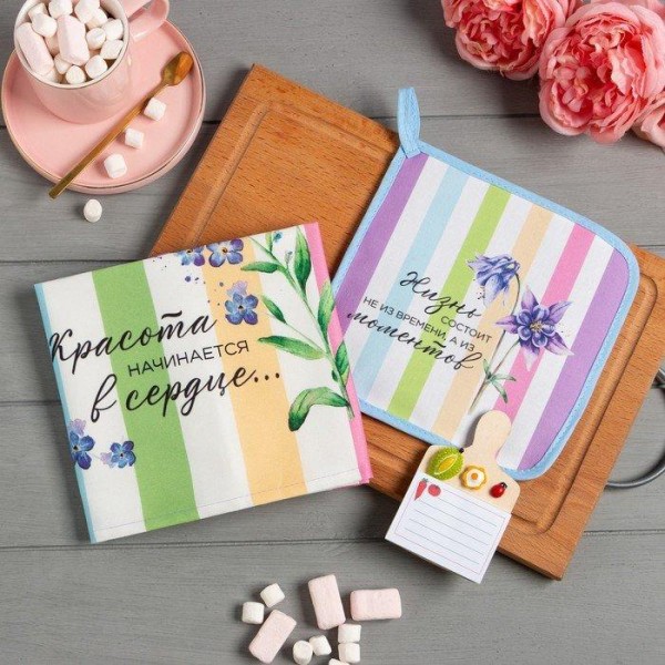 Набор подарочный «Жизнь прекрасна» полотенце 40×73 см, прихватка 19×19 см, магнит 11×7 см