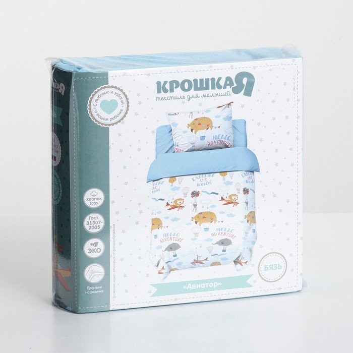 Постельное бельё детское Крошка Я «Авиатор», 112×147 см, 60×120+20 см, 40×60 см, 100% хлопок