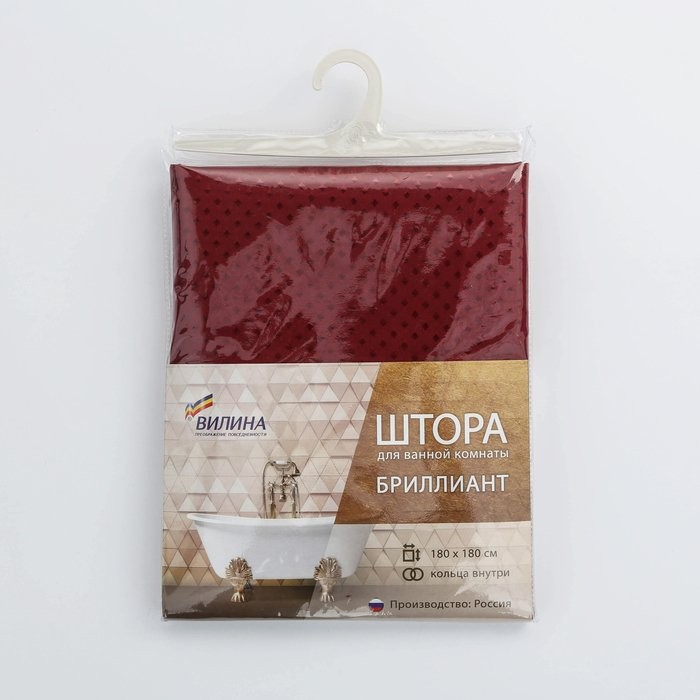 Штора для ванной комнаты «Бриллиант», 180×180 см, полиэстер, цвет бордовый
