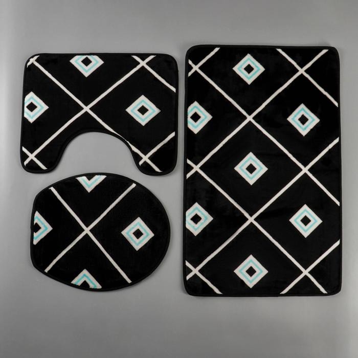 Набор ковриков для ванны и туалета Доляна «Плитка», 3 шт: 50×80, 50×40, 43×38 см