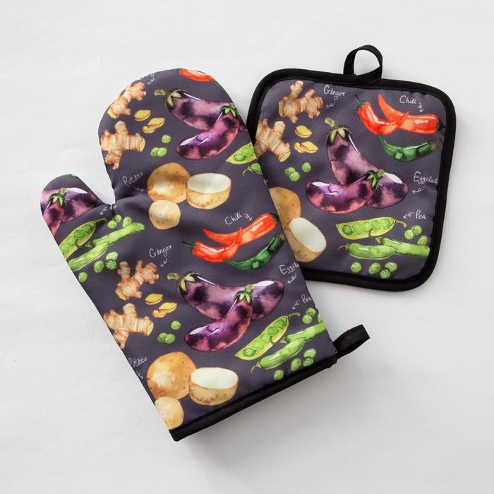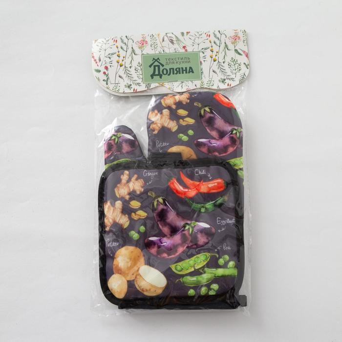 Кухонный набор Доляна «Овощи», прихватка 17×17 см, рукавица 26×16 см