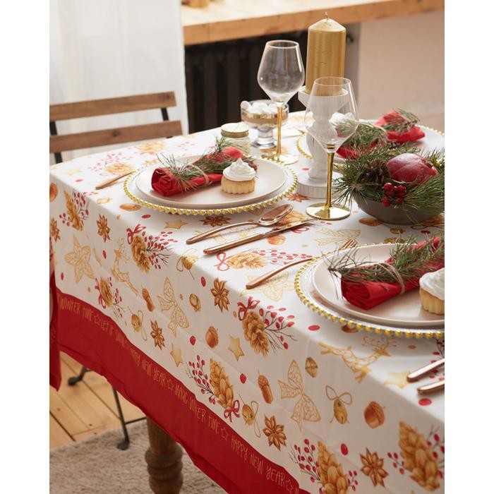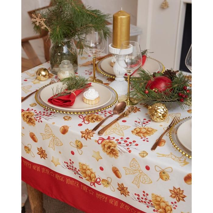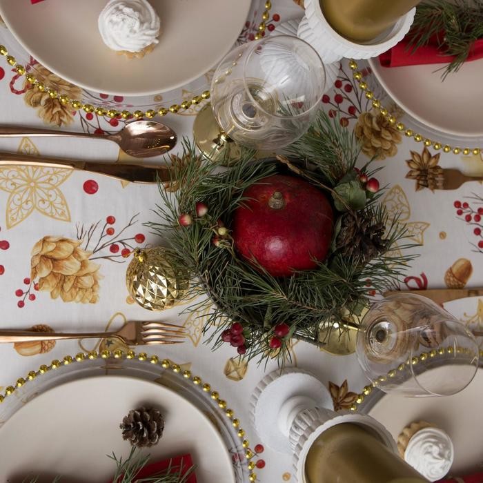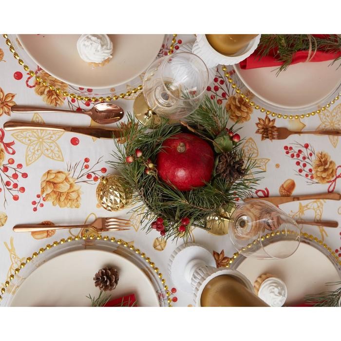Скатерть «Этель» Golden Christmas 149х220см с ГМВО, 100%хл, 190г/м2