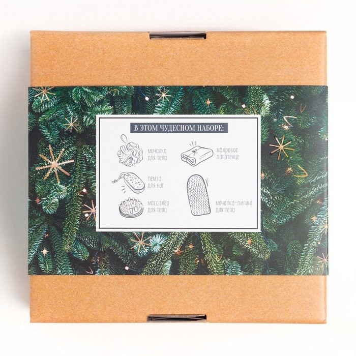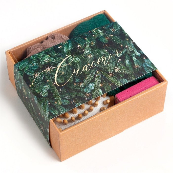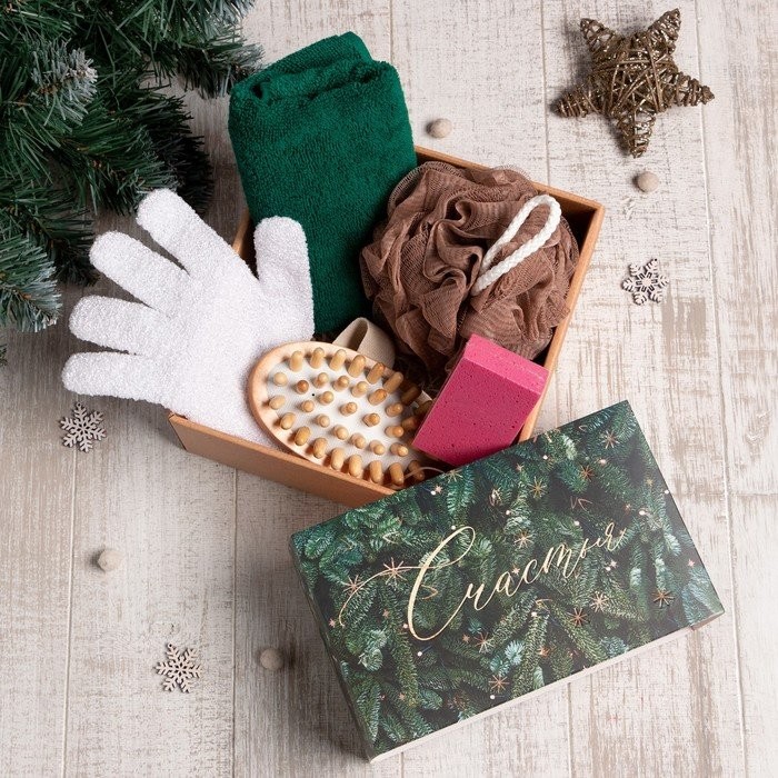 Подарочный набор новогодний «Счастья» полотенце 30×60 см и банные акс. (4 предм)