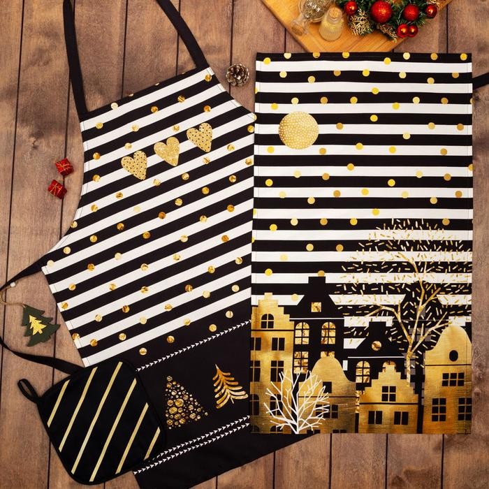 Набор подарочный «Этель» Золотой город, фартук, полотенце, прихватка