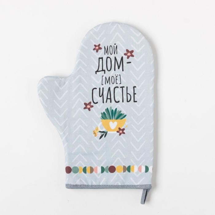 Варежка-прихватка «Мой дом- мое счастье» 20х28см, саржа, 100% х/л, ватин 250г/м2