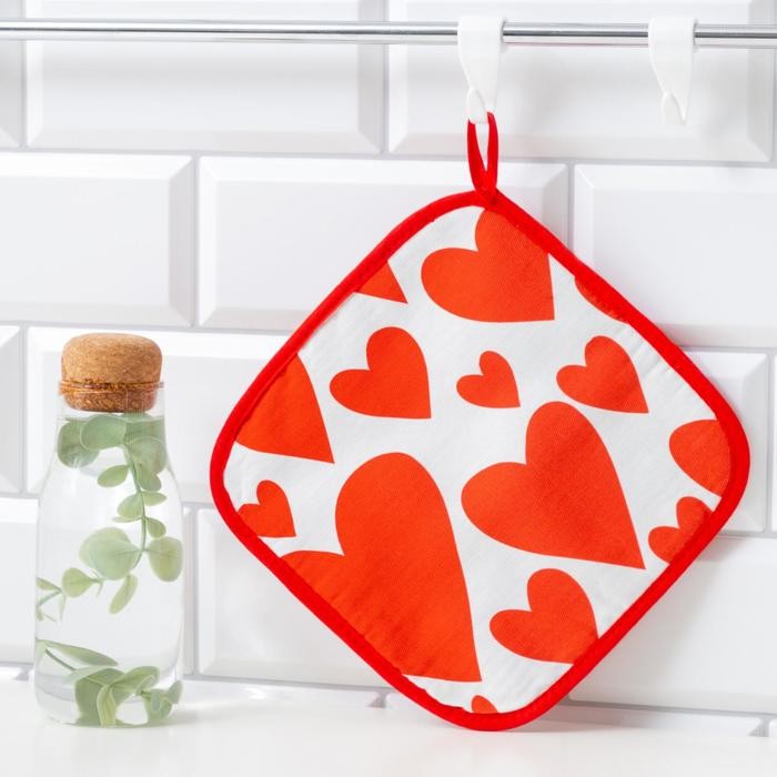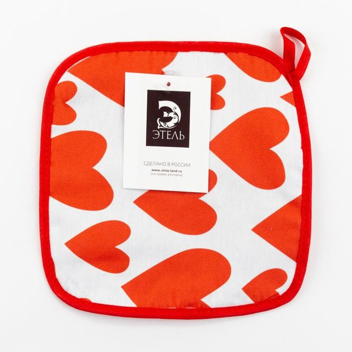 Прихватка «Этель» Red hearts19х19см,100% х/л, ватин 250г/м2 (двухсторонняя)