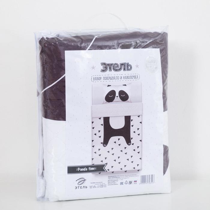 Покрывало детское и наволочка Этель 1,5 сп «Pandatime», 145×210 см, 40×60 см, микрофибра