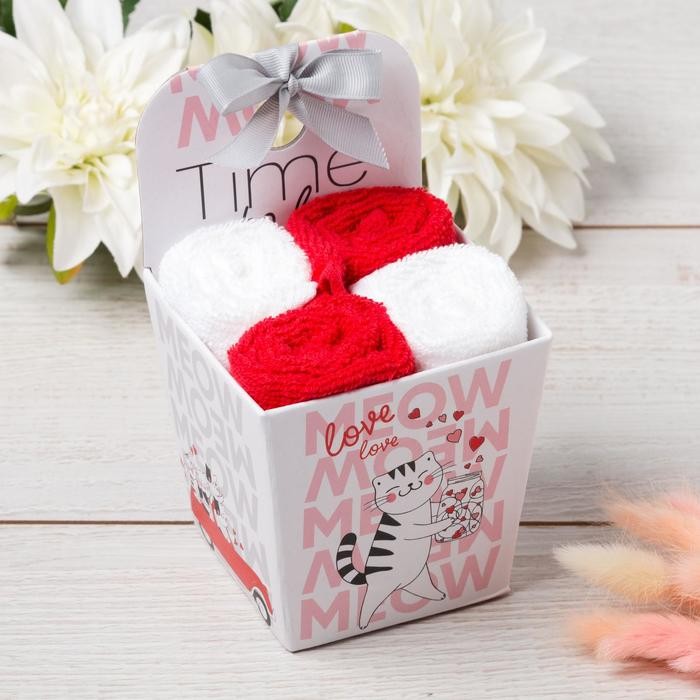 Набор декоративных махровых салфеток «Time to love» 30×30 см — 4 шт, 100% хлопок, 340 гр/м2