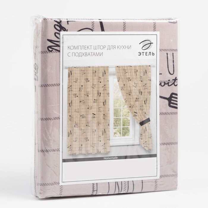 Комплект штор для кухни с подхватами Этель Homemade 145х180см-2 шт., 100% п/э