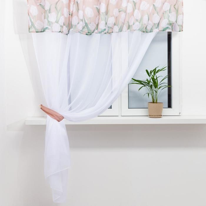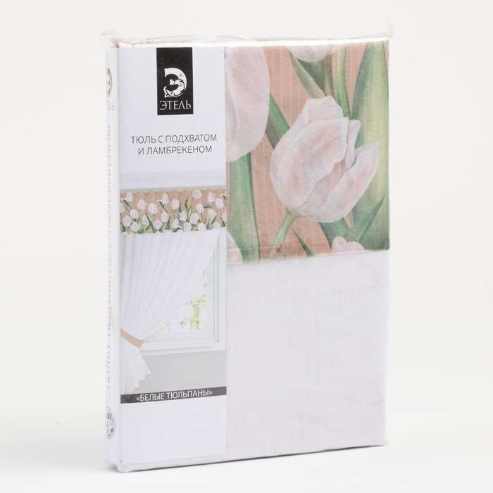 Тюль с подхватом и ламбрекеном Этель «Белые тюльпаны» 250х200см, 100% п/э