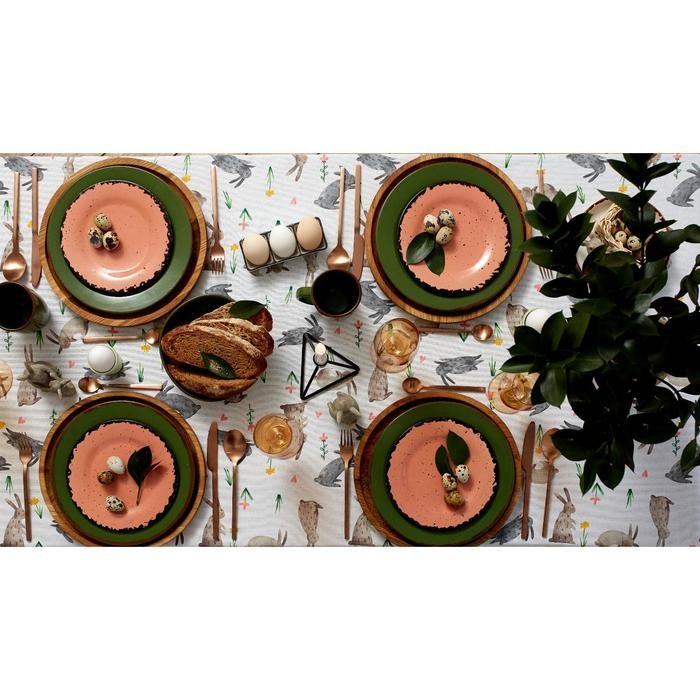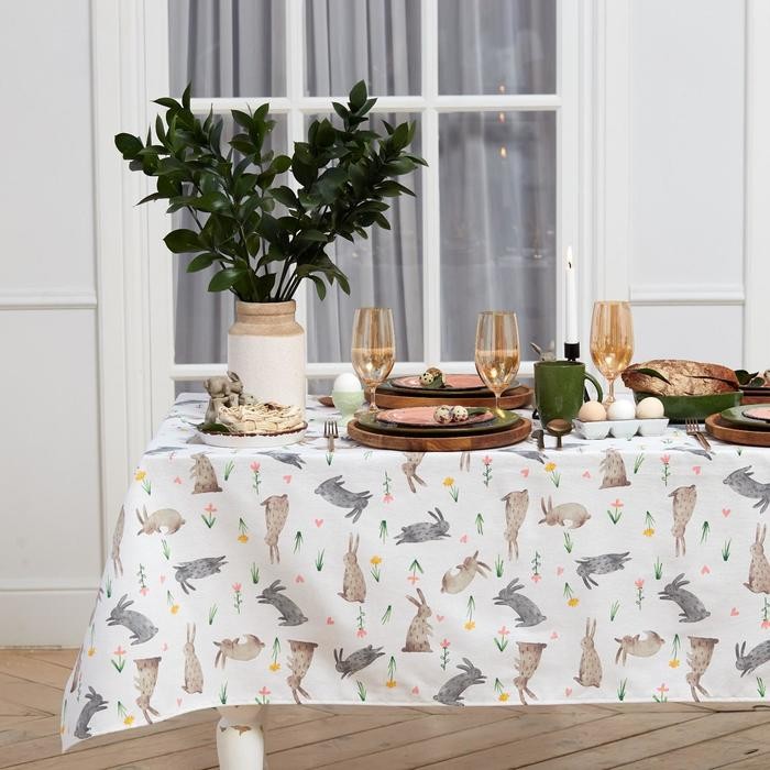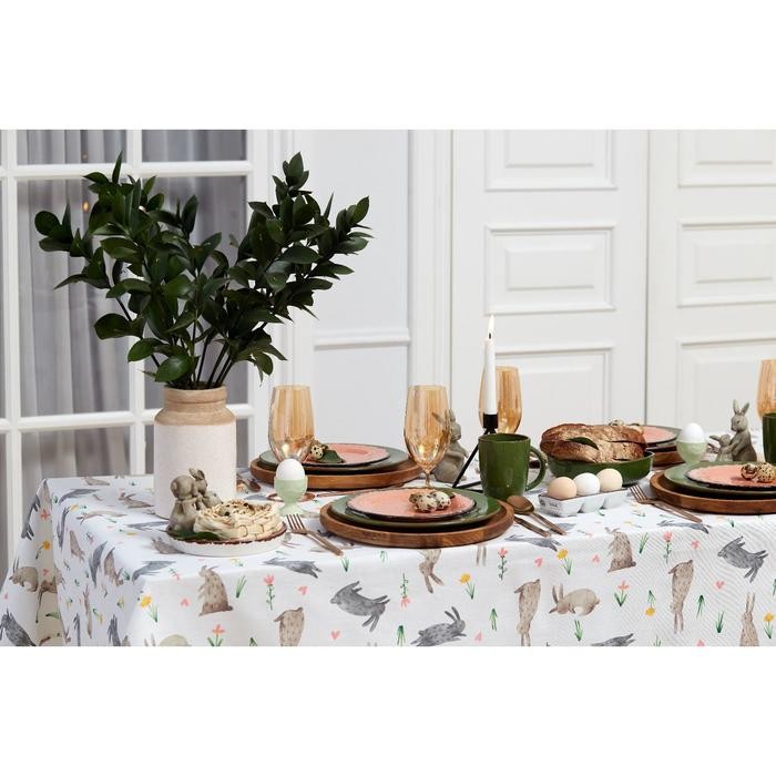 Скатерть пасхальная, Доляна Fluffy bunnies 220×144 см, 100% хлопок, 164 г/м2