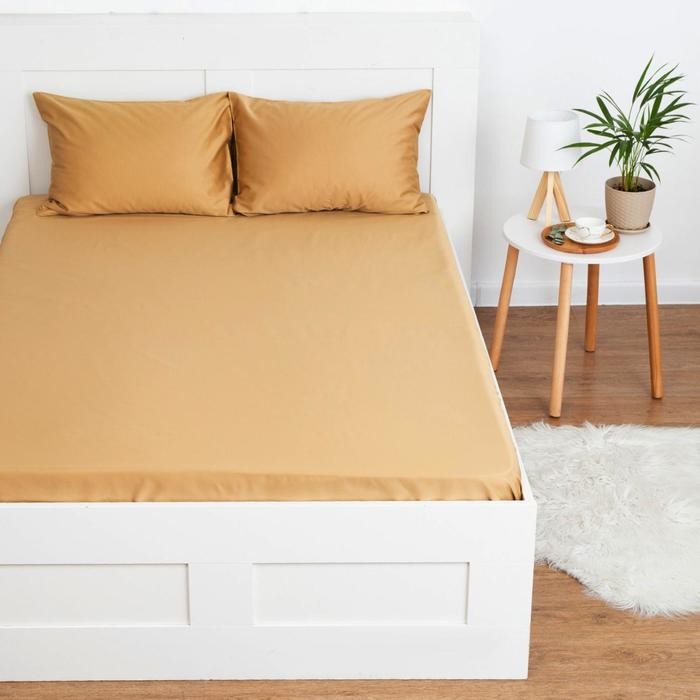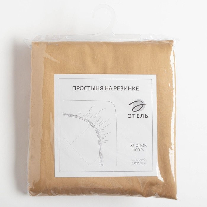 Простыня на резинке Этель 180*200*25 см, цв.песчаный, 100% хлопок, мако-сатин, 125 г/м²