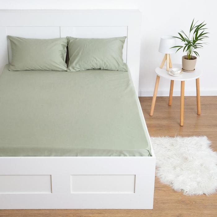 Простыня на резинке Этель 140*200*25 см, цв.оливковый, 100% хлопок, мако-сатин, 125 г/м²