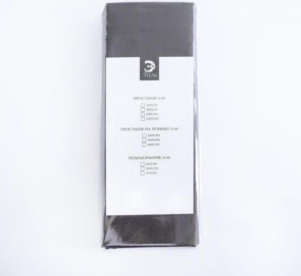 Простыня на резинке Этель 180*200*25 см, цв.темно-серый, 100% хлопок, мако-сатин, 125 г/м²