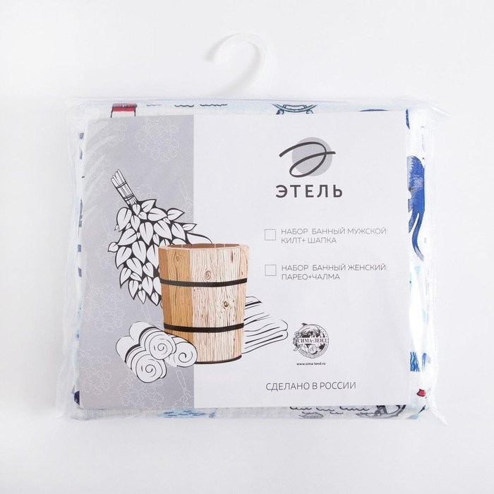 Набор для сауны Этель «Капитан» килт 75*144 см + шапка, вафля 200г/м2, 100% хл